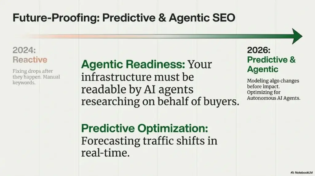 Visibility in 2026 will increasingly depend on “agentic readiness,” the degree to which a brand’s digital infrastructure is optimized for autonomous AI agents that perform research on behalf of buyers.26 This requires a move away from manual keyword lists toward intelligent SEO ecosystems that analyze the SERP in real time and model algorithmic changes before they impact the bottom line.