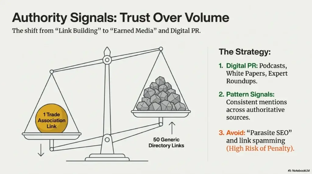 Link building in B2B technical niches has shifted from a volume-based game to a trust-based game. A significant mistake is continuing to pursue low-quality or irrelevant backlinks rather than focusing on “earned media” and digital PR.